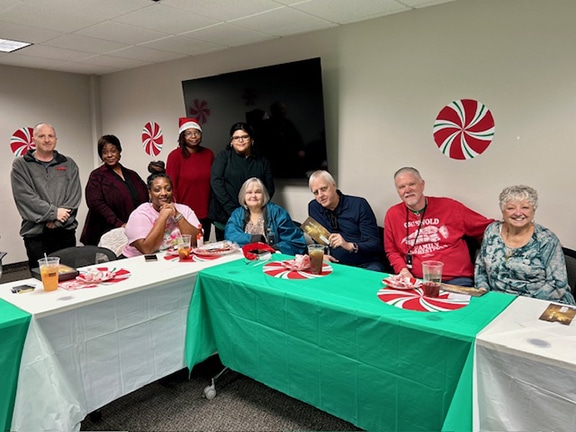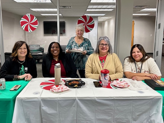 GroupOne Background Screening hosted its annual holiday luncheon yesterday for staff members at its offices in Las Colinas. Employees enjoyed a fajita lunch catered by Mi Cocina, with iced tea and lemonade, and chocolate cake and fruit tarts for dessert. Yum! The executive staff, to include President/CEO Stephen Love and the VP of Finance Delinda Bailey, also presented gift cards to employees and honored the anniversaries of long-time staff members. We would like to thank the DFWHC for a great afternoon of camaraderie during the holiday season!